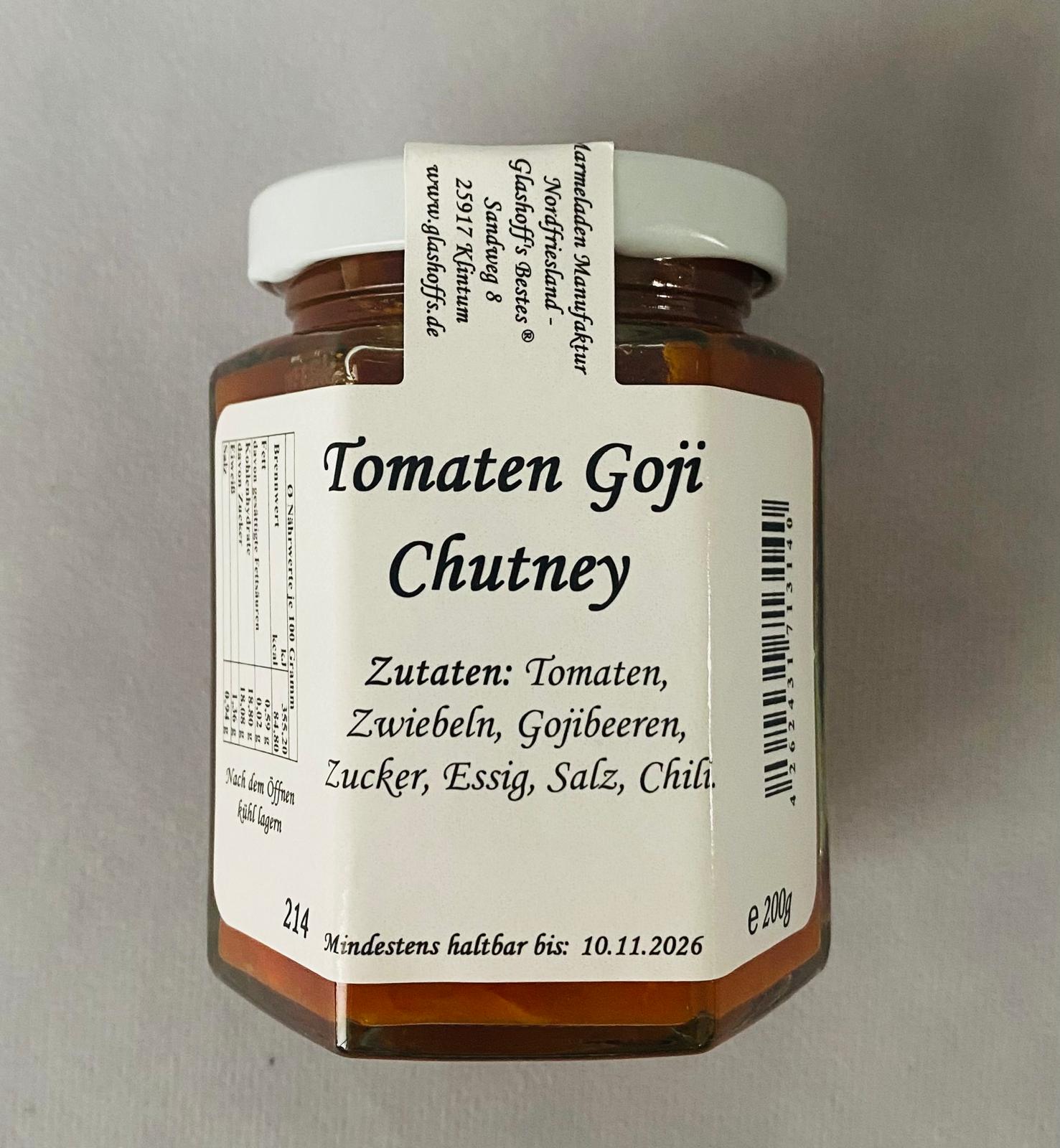 Tomaten-Goji-Chutney - aromatisch und außergewöhnlich, ideal zu Käse, Fleisch oder Antipasti, Inhalt: 200g