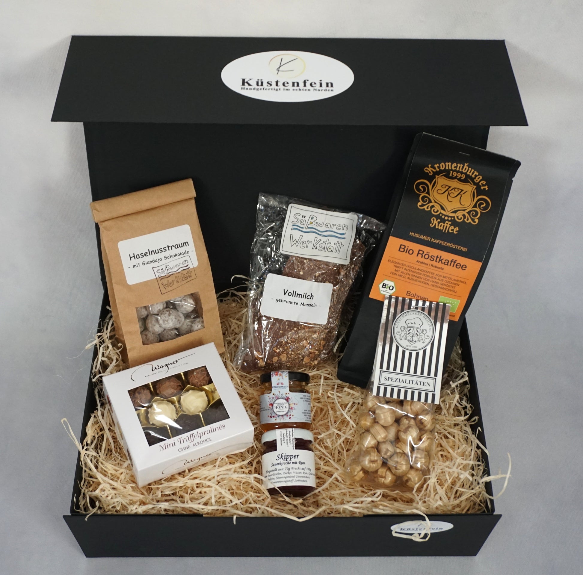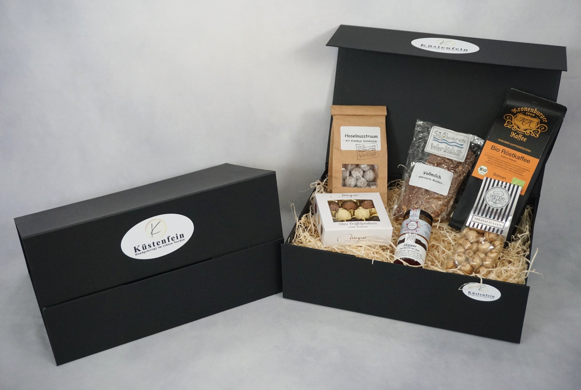Entdecken Sie die exklusive Küstenfein Geschenkbox , die Genuss und Handwerkskunst aus sechs ausgewählten Manufakturen in einer edlen, wieder verwendbaren Magnetbox vereint.