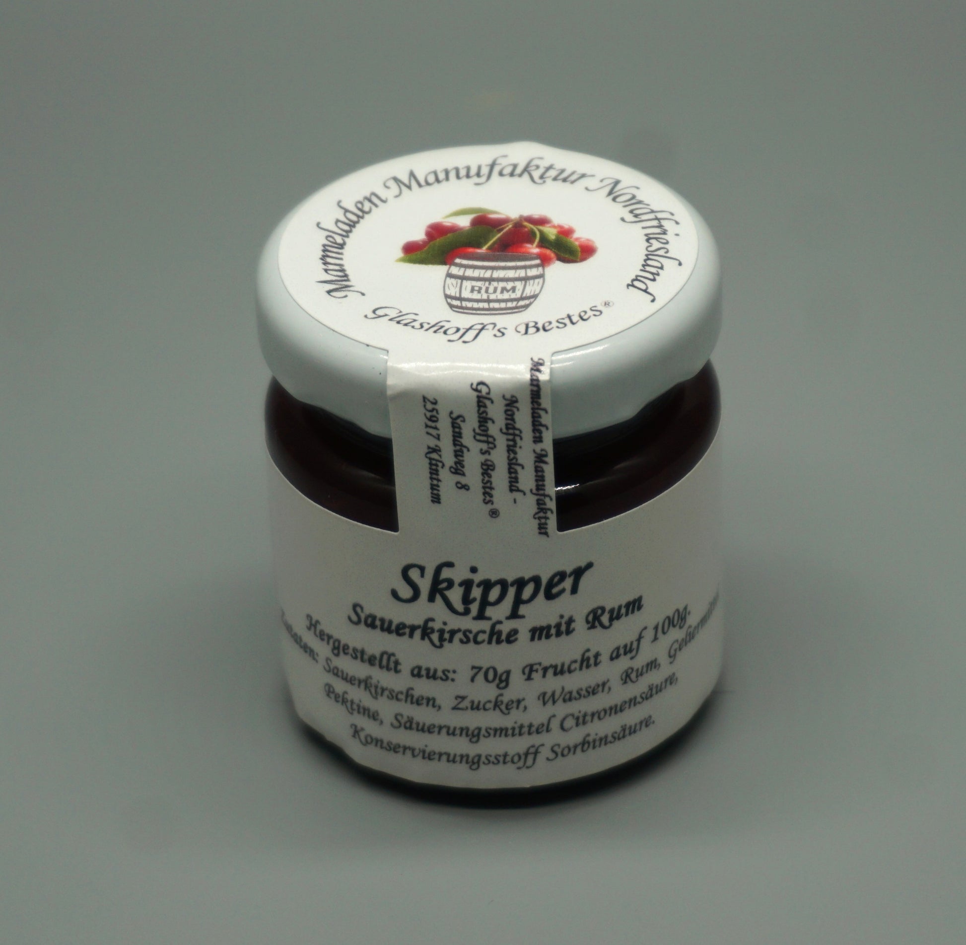Skipper-Sauerkirsche mit Rum - fruchtiger Aufstrich mit maritimer Note, 70g Frucht auf 100g, Inhalt: 50g